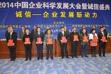黨的十八屆三中全會明確指出,建設(shè)統(tǒng)一開放、競爭有序的市場體系,是使市場在資源配置中起決定性作用的基礎(chǔ)。加快完善現(xiàn)代市場體系,建立公平開放透明的市場規(guī)則,就要建立健全社會征信體系,褒揚誠信,懲戒失信。為了深入學(xué)習(xí)貫徹黨的十八屆三中全會精神,加快推進我國社會信用體系建設(shè)進程,充分發(fā)揮企業(yè)在市場經(jīng)濟中的主體作用,努力營造誠實、自律、守信、互信的社會信用環(huán)境,樹立標(biāo)桿、表彰先進,中國合作貿(mào)易企業(yè)協(xié)會、商務(wù)部研究院信用評級與認(rèn)證中心決定于2014年1月17-18日在北京召開“2014中國企業(yè)科學(xué)發(fā)展大會暨誠信盛典”。