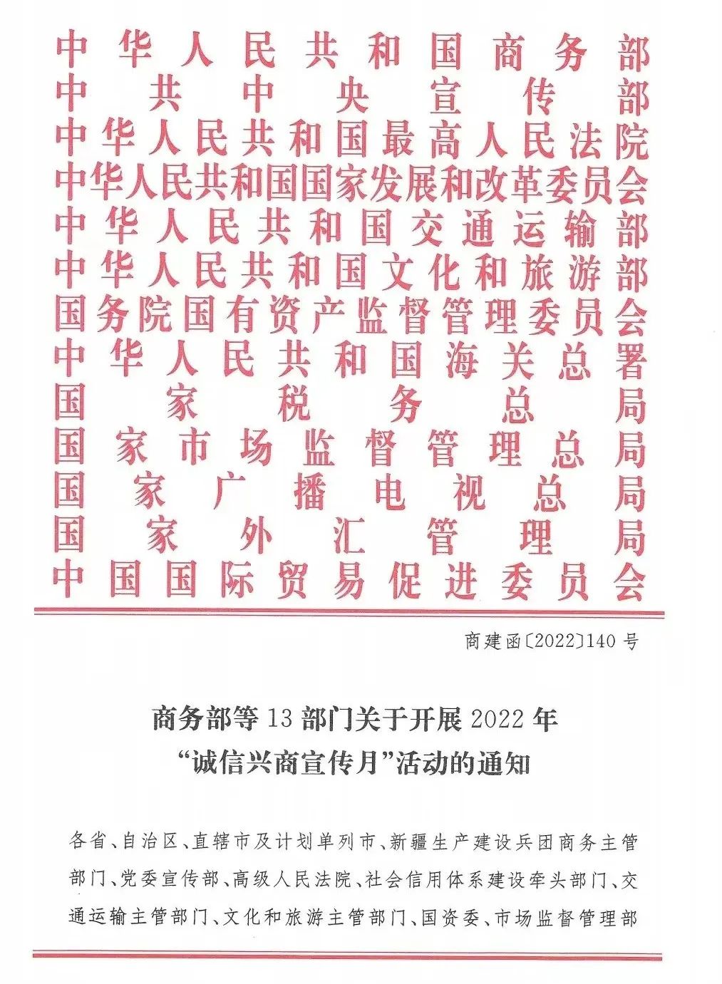 關(guān)于開(kāi)展2022年“誠(chéng)信興商宣傳月”活動(dòng)的通知
