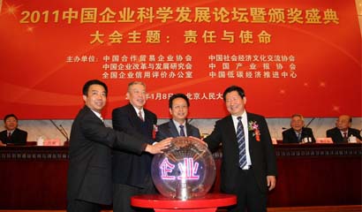 2011年1月8日,中國(guó)企業(yè)科學(xué)發(fā)展論壇在北京人民大會(huì)堂隆重舉辦?,F(xiàn)場(chǎng),由十一屆全國(guó)人大常委會(huì)副委員長(zhǎng)陳昌智、國(guó)務(wù)院發(fā)展研究中心副主任侯云春、財(cái)政部原常務(wù)副部長(zhǎng)遲海濱、中國(guó)合作貿(mào)易企業(yè)協(xié)會(huì)副會(huì)長(zhǎng)兼秘書長(zhǎng)付斌共同啟動(dòng)“中國(guó)企業(yè)信用聯(lián)盟”,并為聯(lián)盟成員企業(yè)代表授“誠(chéng)信旗”。同時(shí),發(fā)布了《中國(guó)企業(yè)信用全球宣言》。
