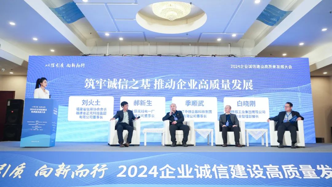 福建省信用協(xié)會會長、福建省正元科技集團(tuán)有限公司董事長劉火土,太原無線電一廠有限公司董事長郝新生,浙江中創(chuàng)企服科技集團(tuán)有限公司董事長季順武,中陜核工業(yè)集團(tuán)有限公司企業(yè)管理部部長白曉剛,圍繞“筑牢誠信之基 推動企業(yè)高質(zhì)量發(fā)展”進(jìn)行了圓桌對話。