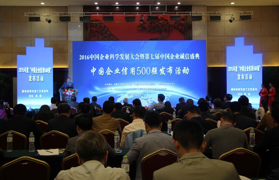 2016年4月15日,由中國(guó)合作貿(mào)易企業(yè)協(xié)會(huì)、中國(guó)企業(yè)改革與發(fā)展研究會(huì)等單位聯(lián)合主辦的“2016中國(guó)企業(yè)科學(xué)發(fā)展大會(huì)暨誠(chéng)信盛典”在京隆重召開。國(guó)務(wù)院研究室、國(guó)務(wù)院國(guó)資委、國(guó)家發(fā)改委、商務(wù)部、工信部、聯(lián)合國(guó)工發(fā)組織等有關(guān)領(lǐng)導(dǎo)、知名專家學(xué)者,以及中國(guó)企業(yè)信用500強(qiáng)代表和誠(chéng)信企業(yè)、企業(yè)家代表約200多人參加了本次大會(huì)。