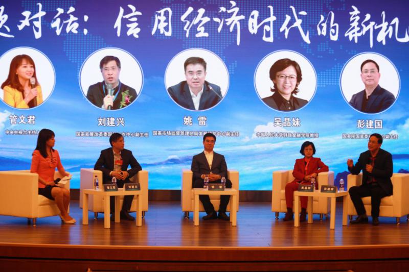 國家發(fā)展改革委國際合作中心副主任劉建興,國家市場監(jiān)督管理總局發(fā)展研究中心副主任姚雷,中國人民大學(xué)財政金融學(xué)院教授、信用管理學(xué)科帶頭人吳晶妹,國務(wù)院國資委研究中心副主任彭建國,圍繞“信用經(jīng)濟時代的新機遇”進行了主題對話。