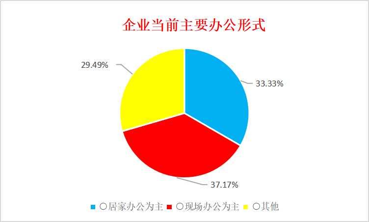 從495份問卷的結(jié)果看,辦公形式更加靈活。居家辦公占比33.33%,現(xiàn)場辦公占比37.17%,其他形式占比為29.49%。
