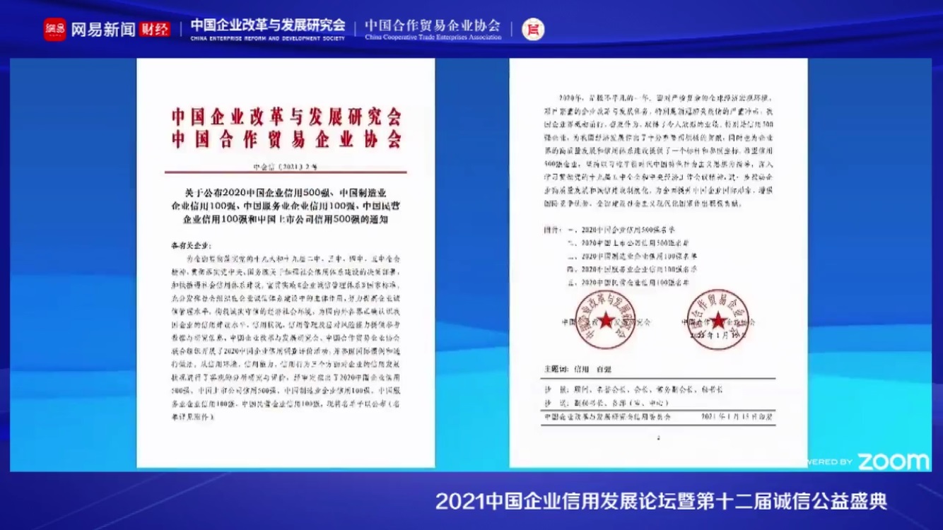 1月16日,“2021中國企業(yè)信用發(fā)展論壇暨第十二屆誠信公益盛典”在京隆重召開。本次論壇由中國企業(yè)改革與發(fā)展研究會、中國合作貿(mào)易企業(yè)協(xié)會主辦,由國信聯(lián)合(北京)認證中心承辦,由國家社科基金社科學術(shù)團體活動資助,網(wǎng)易財經(jīng)、新浪財經(jīng)、鳳凰財經(jīng)、和訊財經(jīng)、企業(yè)觀察報作為媒體支持。中國企業(yè)改革與發(fā)展研究會常務(wù)副會長許金華,中國節(jié)能環(huán)保集團有限公司黨委書記、董事長宋鑫,海關(guān)總署國際檢驗檢疫標準與技術(shù)法規(guī)研究中心副主任趙明剛,中國合作貿(mào)易企業(yè)協(xié)會副會長兼秘書長高景遠,中國企業(yè)改革與發(fā)展研究會常務(wù)副秘書長李華,山西杏花村汾酒集團有限責任公司黨委書記、董事長李秋喜,著名經(jīng)濟學家、華夏新供給經(jīng)濟學研究院院長賈康,著名經(jīng)濟學家、如是金融研究院院長管清友,中國人民大學財政金融學院教授、信用管理學科帶頭人吳晶妹,中國企業(yè)改革與發(fā)展研究會信用委員會主任、中國合作貿(mào)易企業(yè)協(xié)會金融與信用委員會主任劉棟棟出席論壇。2020年度中國企業(yè)信用500強代表、誠信企業(yè)和企業(yè)家代表通過線上方式觀看視頻直播。