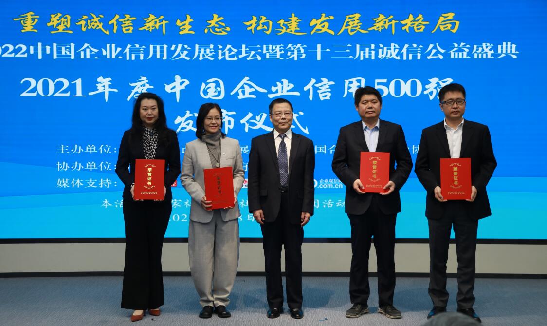 1月8日,“2022中國企業(yè)信用發(fā)展論壇暨第十三屆誠信公益盛典”在京隆重召開,中國企業(yè)改革與發(fā)展研究會常務(wù)副會長許金華在論壇上發(fā)布了2021年度中國企業(yè)信用500強、中國制造業(yè)企業(yè)信用100強、中國服務(wù)業(yè)企業(yè)信用100強、中國民營企業(yè)信用100強、中國上市公司信用500強(詳見《中國企業(yè)信用發(fā)展報告2021》)。其中,中國企業(yè)信用500強為第10次發(fā)布,也是第7次由原來的信用100強擴充為信用500強;中國制造業(yè)企業(yè)信用100強、中國服務(wù)業(yè)企業(yè)信用100強為第9次發(fā)布;中國民營企業(yè)信用100強為第8次發(fā)布;中國上市公司信用500強為第7次發(fā)布,也是第5次由原來的信用100強擴充為信用500強。
