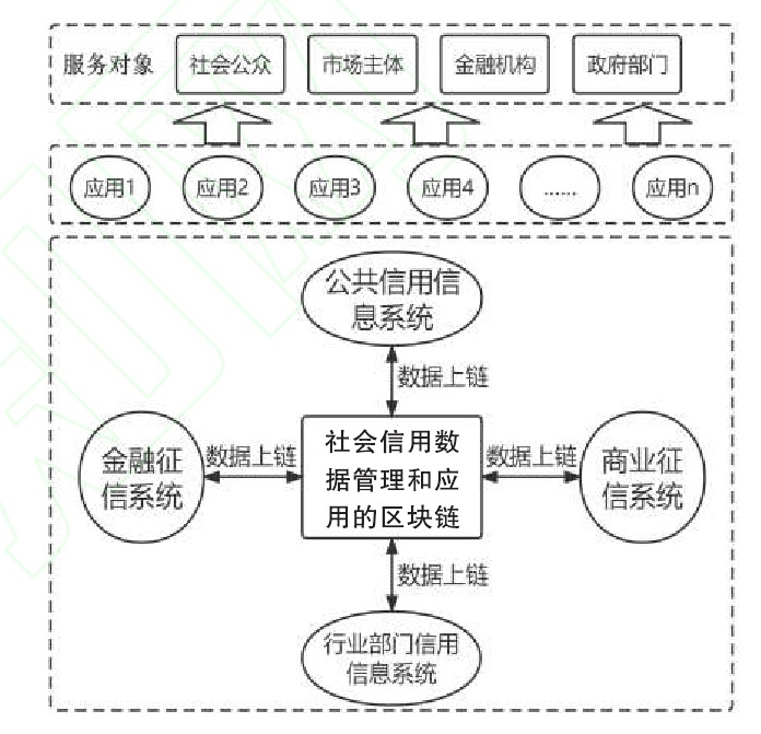 中心化的系統(tǒng)對接和數(shù)據(jù)整合模式數(shù)據(jù)安全沒有保障、數(shù)據(jù)處理成本較高。因此推動公共信用信息系統(tǒng)、行業(yè)部門信用信息系統(tǒng)、金融征信系統(tǒng)、商業(yè)征信系統(tǒng)等子基礎(chǔ)平臺上鏈以去中心化的模式構(gòu)建覆蓋全社會的信用信息系統(tǒng)。
