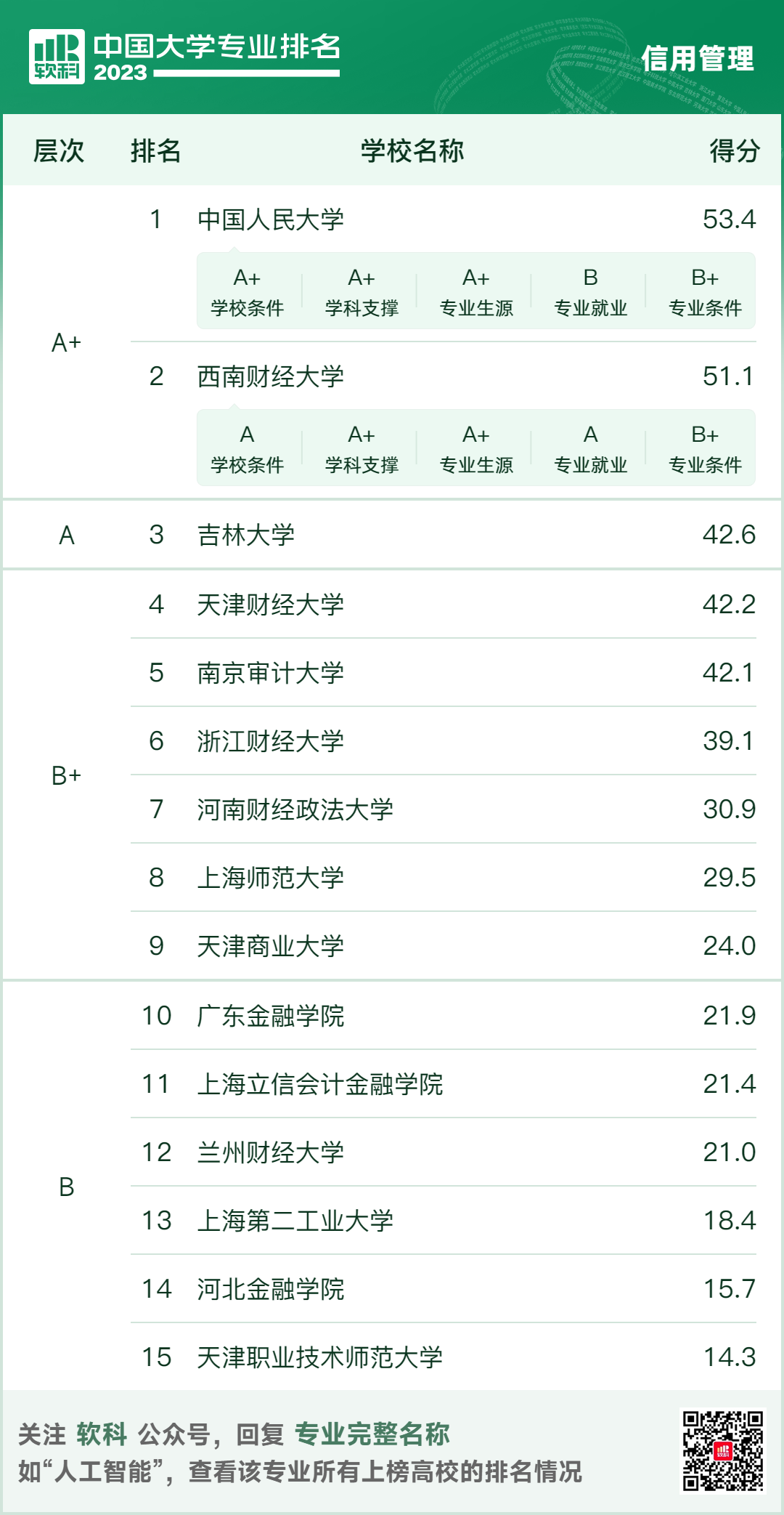 其中,信用管理專(zhuān)業(yè)排名結(jié)果如下: