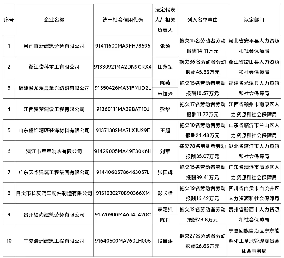 拖欠農民工工資失信聯(lián)合懲戒對象名單