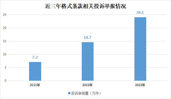2023年,全國12315平臺共接收合同問題投訴舉報(bào)194.3萬件,同比增長25.2%。其中,經(jīng)營者利用合同格式條款排除消費(fèi)者權(quán)利、經(jīng)營者利用合同格式條款加重消費(fèi)者責(zé)任、經(jīng)營者利用合同格式條款免除自身責(zé)任三項(xiàng)合計(jì)24.1萬件,同比增長63.9%。從商品服務(wù)類別來看,服務(wù)類合同問題投訴舉報(bào)126.4萬件,同比增長32.8%,占合同問題總量的65.1%。服務(wù)類消費(fèi)具有更強(qiáng)的主觀性,合同簽訂及履行問題較為嚴(yán)重,比較容易引發(fā)消費(fèi)糾紛。2023年,極為火爆的旅游市場頻頻出圈,各類消費(fèi)問題也隨之浮現(xiàn)。全國12315平臺接收旅游服務(wù)投訴舉報(bào)13.8萬件,同比增長2.2倍;其中合同問題2.5萬件,占比18.1%。消費(fèi)者反映的問題主要集中在商家設(shè)定不合理?xiàng)l款導(dǎo)致退款困難、商家未按合同約定提供相應(yīng)的商品或服務(wù)、以不公平格式條款要求消費(fèi)者支付高額違約金等。