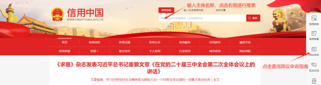 “信用中國(guó)”異議申訴操作指引