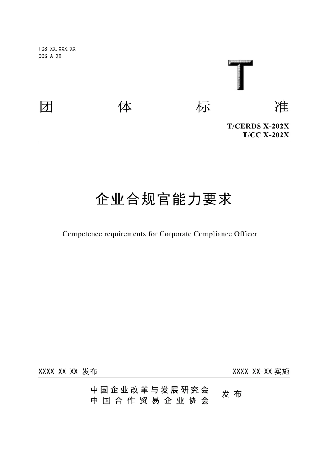 《企業(yè)合規(guī)官能力要求》團體標準是中國企業(yè)改革與發(fā)展研究會、中國合作貿(mào)易企業(yè)協(xié)會聯(lián)合提出并歸口的團體標準項目,于2025年3月5日正式立項(計劃編號:T/CERDS-JH202501、T/CC-JH202501),由中國商業(yè)聯(lián)合會商業(yè)創(chuàng)新工作委員會、國信聯(lián)合(北京)認證中心、一起合規(guī)(北京)企業(yè)管理有限公司、北京新時代信用評價中心、國信標準(北京)信用評價中心等單位牽頭起草,計劃于2025年內(nèi)完成標準研制工作。