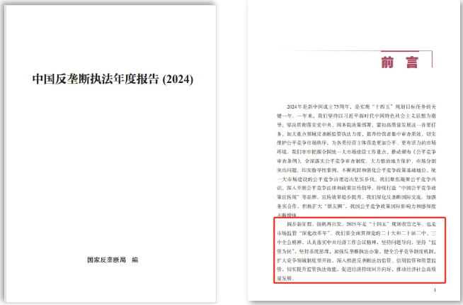為營造有利于公平競爭的社會氛圍,推動公平競爭政策深入實施,近日,市場監(jiān)管總局(國家反壟斷局)發(fā)布《中國反壟斷執(zhí)法年度報告(2024)》,主要包括特輯、全年工作綜述、監(jiān)管執(zhí)法成效、法治建設(shè)、公平競爭政策實施、競爭宣傳倡導(dǎo)、國際交流合作和地方工作等內(nèi)容。