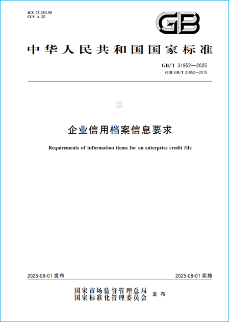 8月1日,國(guó)家市場(chǎng)監(jiān)督管理總局(國(guó)家標(biāo)準(zhǔn)化管理委員會(huì))發(fā)布2025年第19號(hào)中國(guó)國(guó)家標(biāo)準(zhǔn)公告,批準(zhǔn)發(fā)布416項(xiàng)推薦性國(guó)家標(biāo)準(zhǔn)和3項(xiàng)推薦性國(guó)家標(biāo)準(zhǔn)修改單。其中,由全國(guó)社會(huì)信用標(biāo)準(zhǔn)化技術(shù)委員會(huì)(SAC/TC 470)提出并歸口、中國(guó)企業(yè)改革與發(fā)展研究會(huì)等單位起草的《企業(yè)信用檔案信息要求》(GB/T 31952—2025)正式發(fā)布,自2025年8月1日起實(shí)施。