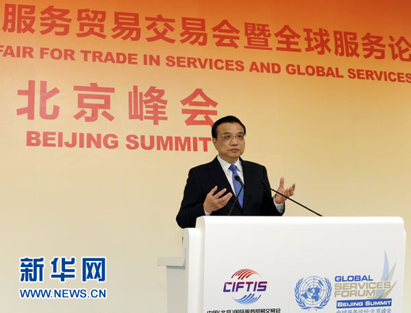 新華網(wǎng)北京5月29日電 29日,第二屆京交會暨全球服務(wù)論壇北京峰會在人民大會堂舉行,中共中央政治局常委、國務(wù)院總理李克強出席并發(fā)表“把服務(wù)業(yè)打造成經(jīng)濟社會可持續(xù)發(fā)展的新引擎”的主旨演講。