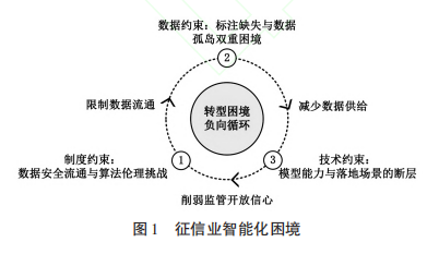 在金融強國戰(zhàn)略與人工智能技術深度賦能的背景下,我國征信業(yè)智能化面臨著制度性壁壘、數據約束效應與技術應用瓶頸三重困境?,F有研究過度聚焦技術要素的局部優(yōu)化,忽視了制度與數據的協同演進需求,導致行業(yè)陷入“局部優(yōu)化、整體停滯”的惡性循環(huán)。