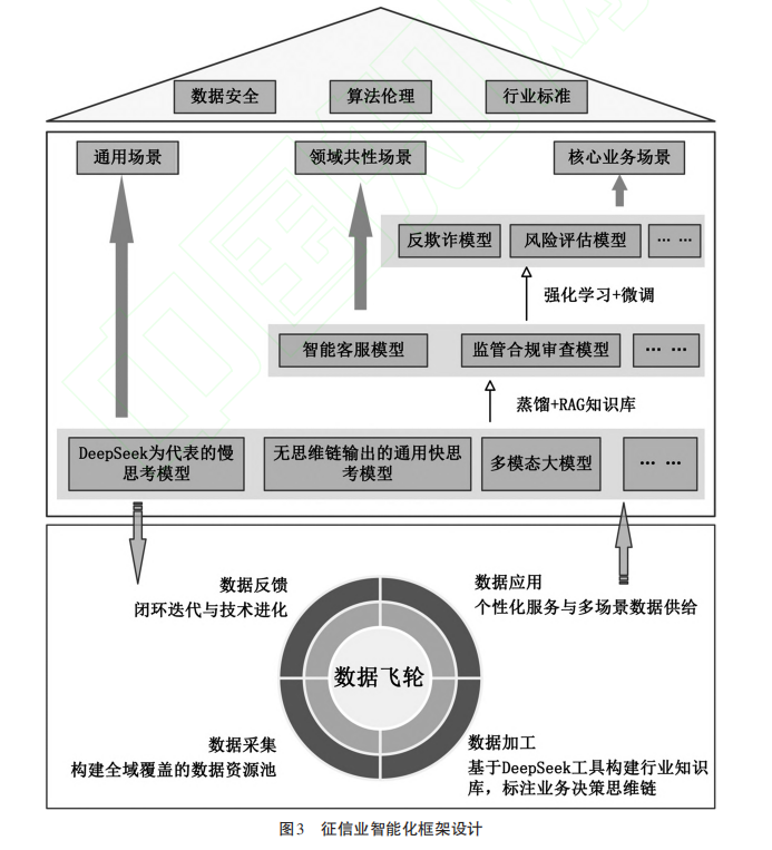以DeepSeek大模型的技術突破為切入點,系統(tǒng)解析了DeepSeek大語言模型不僅通過低算力需求、強化學習策略和顯性化決策鏈條重建了行業(yè)應用人工智能技術的信心,緩解了數據孤島與模型幻覺問題,更通過開源生態(tài)推動技術平權,形成技術、數據與制度要素的動態(tài)適配機制?;诖?,提出了“數據飛輪—分層賦能—制度護航”的協同框架,為智能征信生態(tài)的可持續(xù)發(fā)展提供方法論支撐。