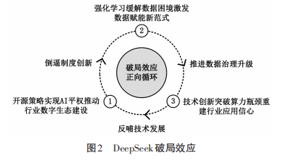 總的來說,如圖2所示,DeepSeek-R1大模型的出現全面打破了當前“數據、技術、制度”的惡性循環(huán)制約,有效推動了人工智能技術的普及,通過降低算力成本和應用門檻,觸發(fā)全行業(yè)應用場景的規(guī)?;涞亍_M而凸顯出數據要素的戰(zhàn)略地位,倒逼機構加速推進數據治理體系升級,典型表現為業(yè)務決策思維鏈標注與多源異構數據整合,進一步釋放數據價值。數據價值的釋放客觀上要求制度層面的適應性變革,由此形成技術創(chuàng)新、價值釋放、制度演進的協同進化機制。