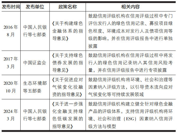 表:中國支持信用評(píng)級(jí)中納入ESG考量政策梳理